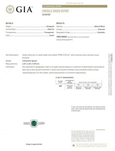 コロンビア産エメラルド ダイヤモンドリング EM 0.39ct F-1 D 0.41ct Pt950 GIA鑑別書付