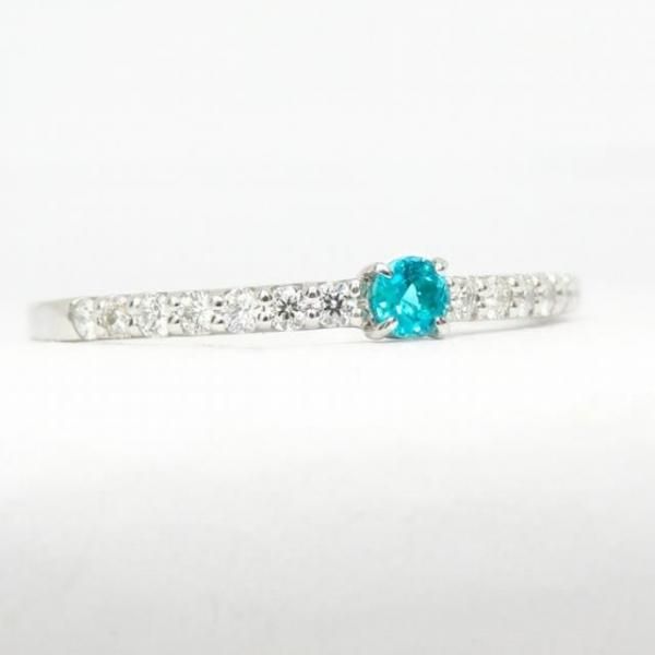 こちらはラウンドのブラジル産パライバトルマリンを添えた新作ダイヤモンドリング。