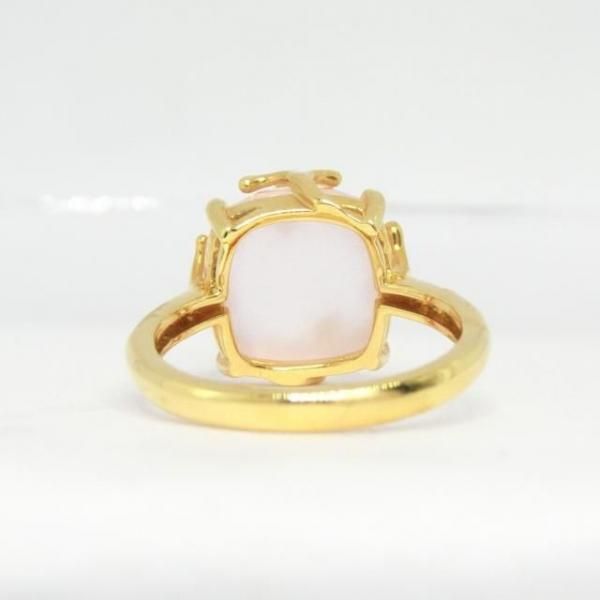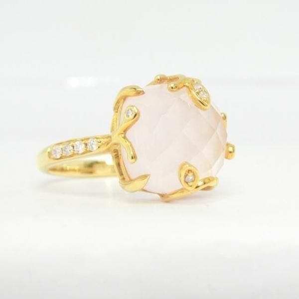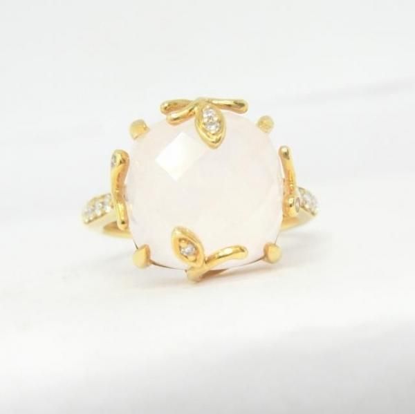 大粒のローズクォーツを繊細なボタニカルモチーフで表現した当店お勧めのリングでございます。