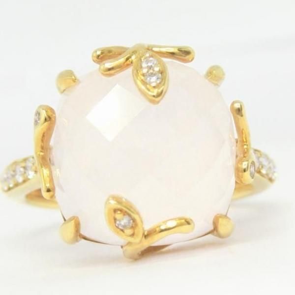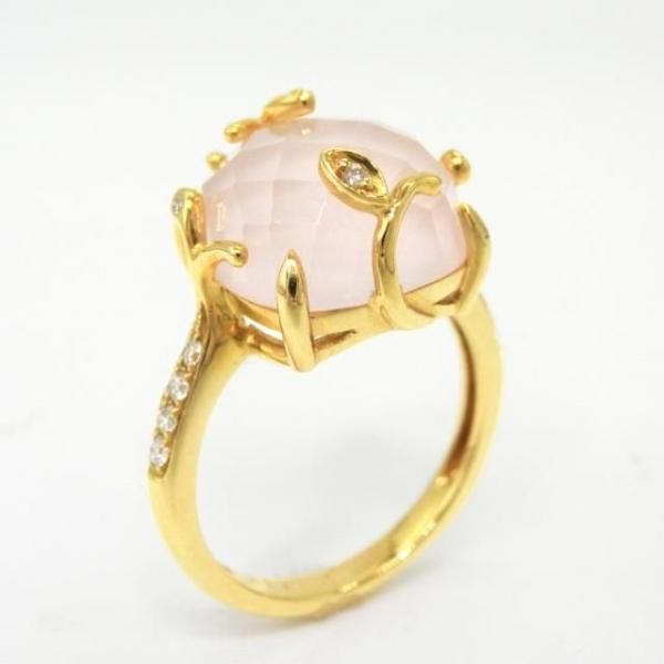 〜 ローズクォーツ ボタニカルモチーフダイヤモンドリング QU 7.30ct D 0.12ct K18YG C-LINE GGSJ鑑別書付 〜
