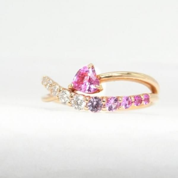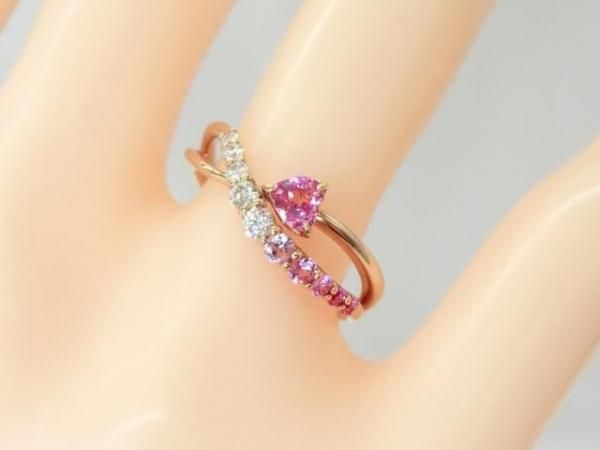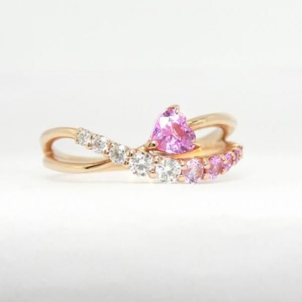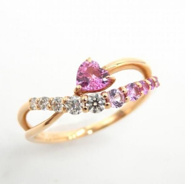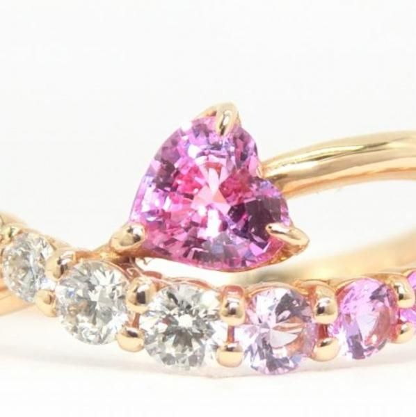 ハートシェイプパパラチアサファイア ピンクサファイア ダイヤモンドリング PDS 0.29ct PS 0.15ct D 0.13ct K18PG DGL鑑別書付