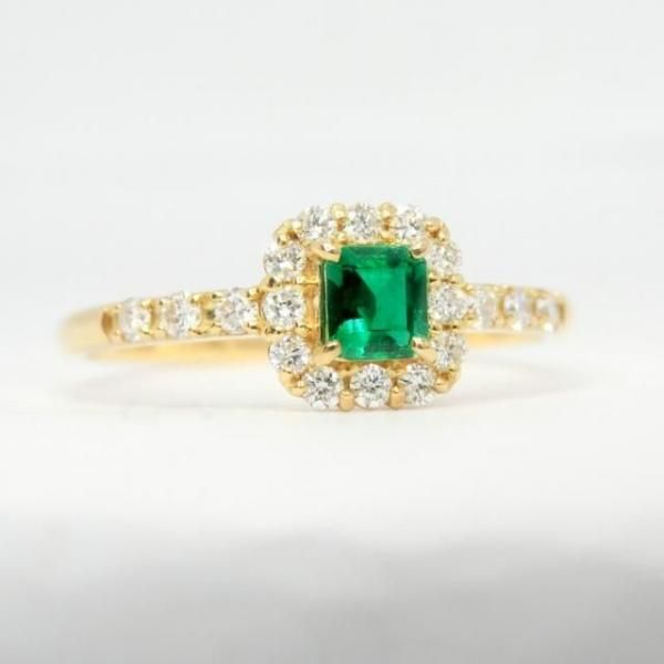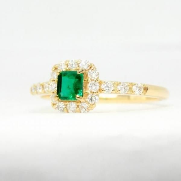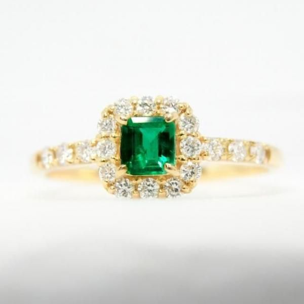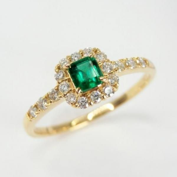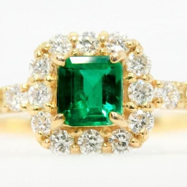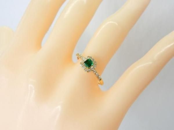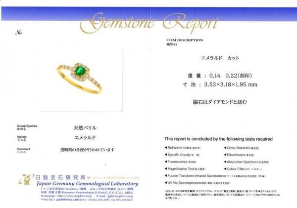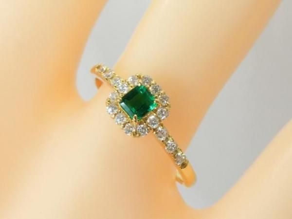 エメラルド ダイヤモンドリング EM 0.14ct D 0.22ct K18YG 日独宝石研究所鑑別書付