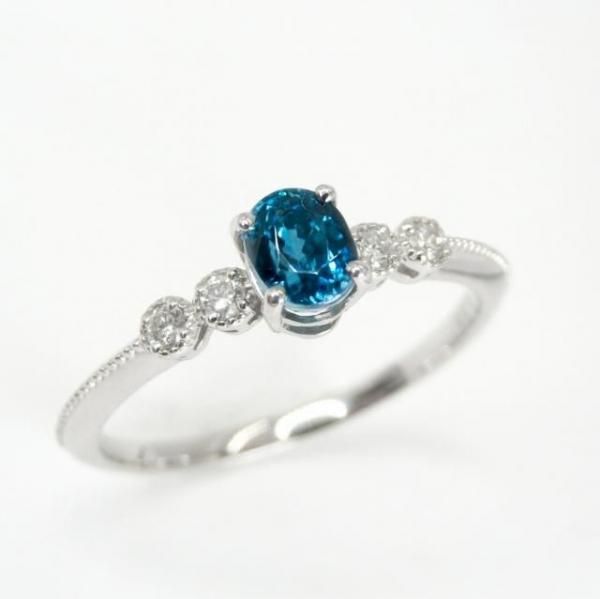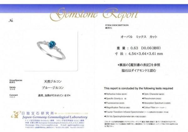 ブルージルコン ダイヤモンドリング ZI 0.63ct D 0.06ct Pt900 日独宝石研究所鑑別書付