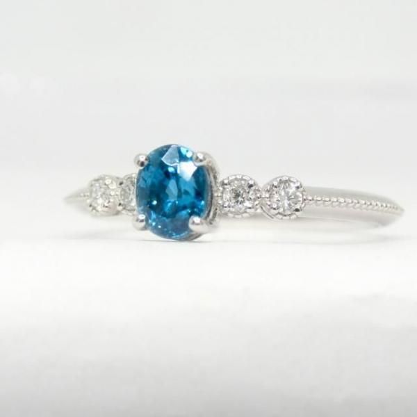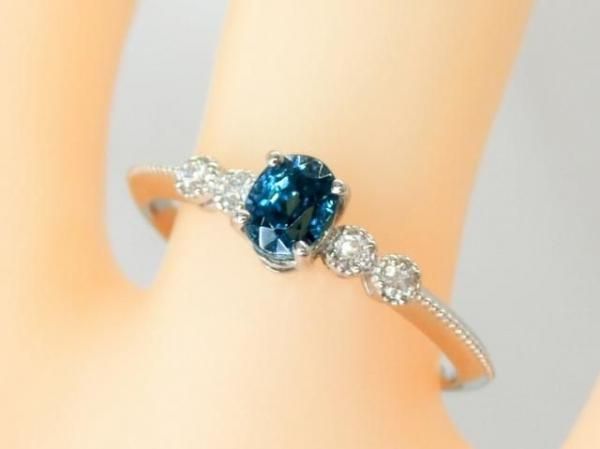 〜 ブルージルコン ダイヤモンドリング ZI 0.63ct D 0.06ct Pt900 日独宝石研究所鑑別書付 〜