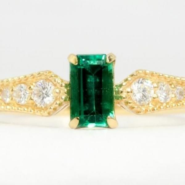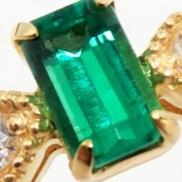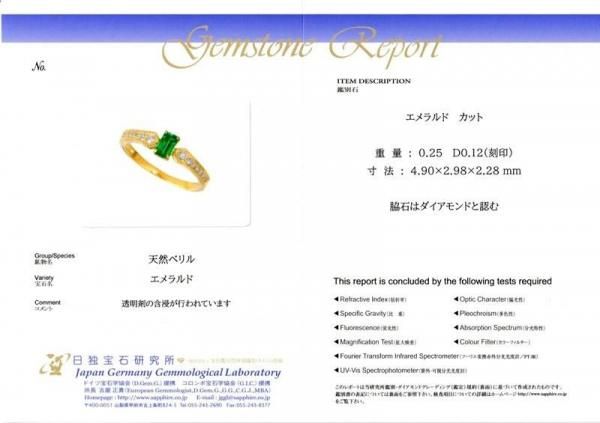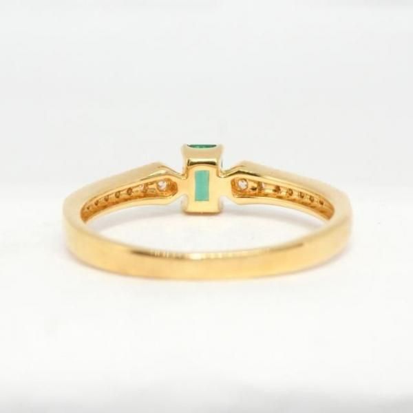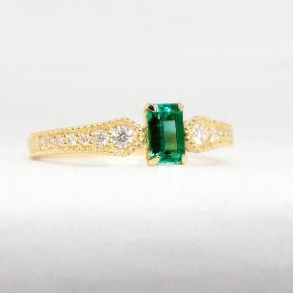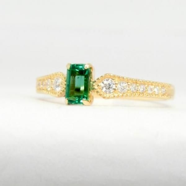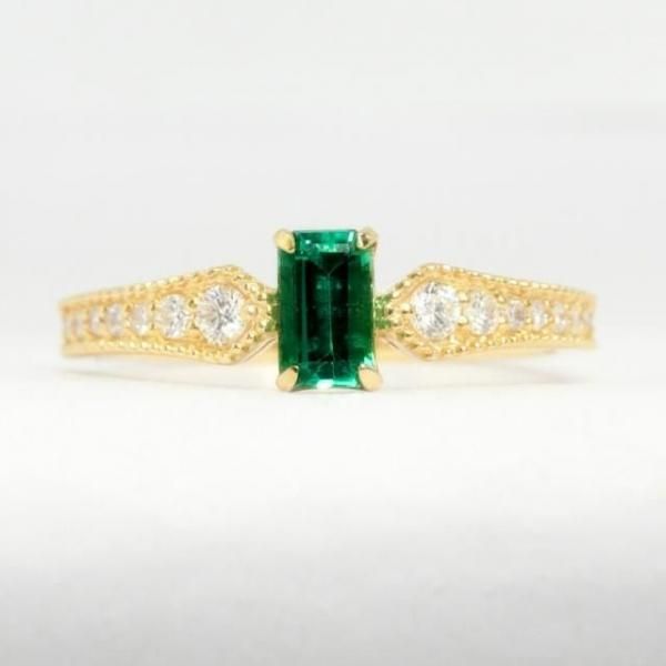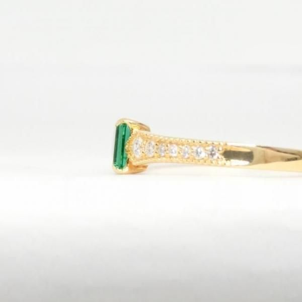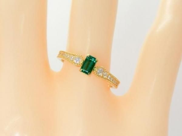 エメラルド ダイヤモンド ミルデザインリング EM 0.25ct D 0.12ct K18YG 日独宝石研究所鑑別書付