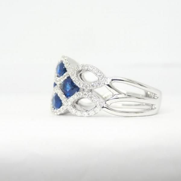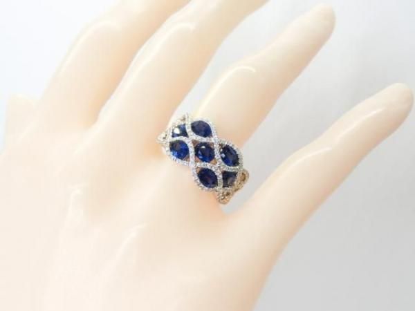 存在感あるサファイアと、繊細にセッティングされたダイヤモンドのきらめきがとても目を惹く新作リングでございます。