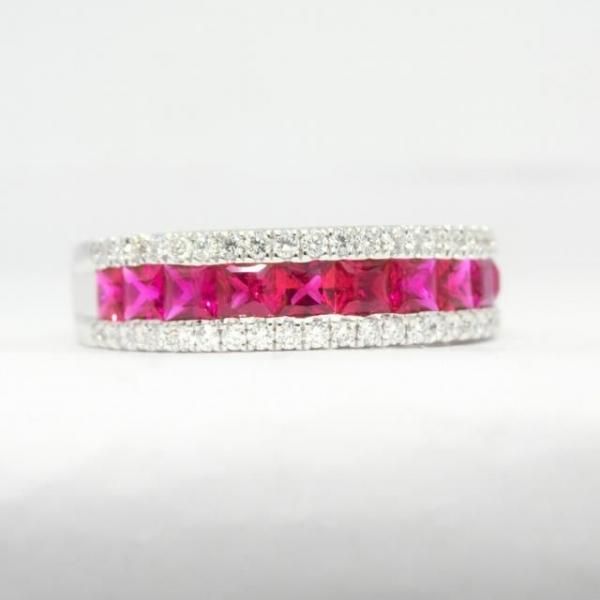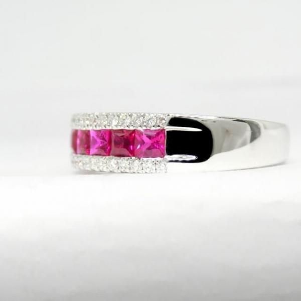プリンセスカットルビー ダイヤモンドリング R 1.18ct D 0.30ct K18WG BOUTIQUE LINE