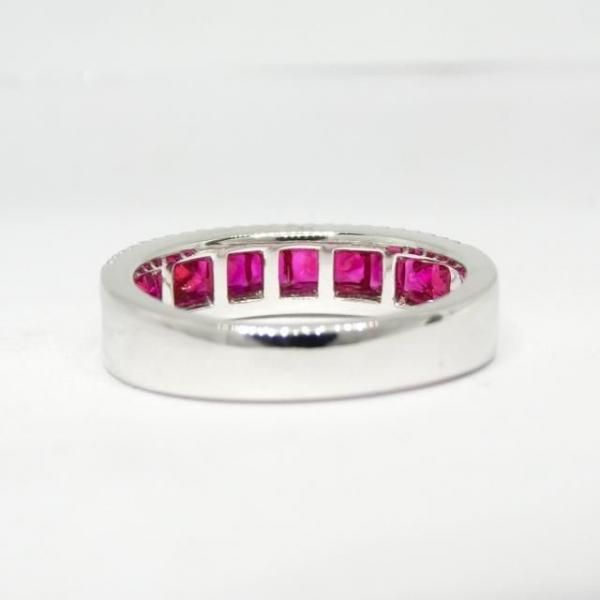 ルビーを挟み込むようにカラーレスダイヤモンドをあしらわれ、色合いのコントラストが素晴らしい。