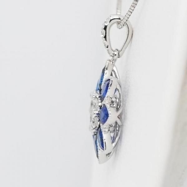 サファイア ダイヤモンドフラワーモチーフネックレス SA 1.41ct D 0.38ct 45cm K18WG GGSJ鑑別書付