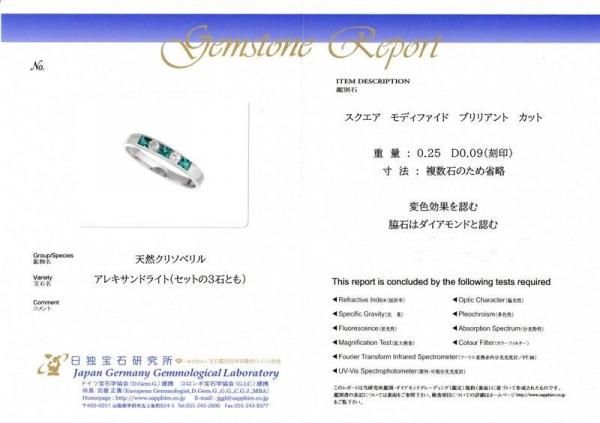 プリンセスカットアレキサンドライト ダイヤモンドハーフエタニティリング AX 0.25ct D 0.09ct Pt950 日独宝石研究所鑑別書付