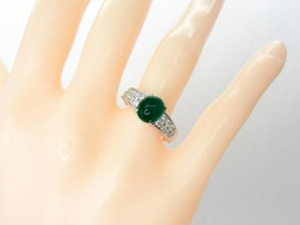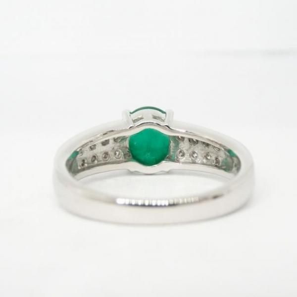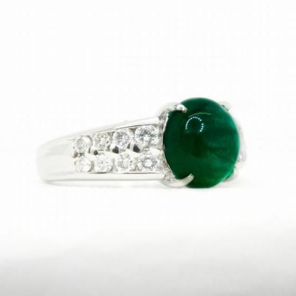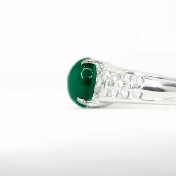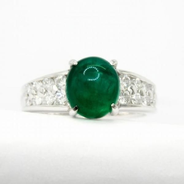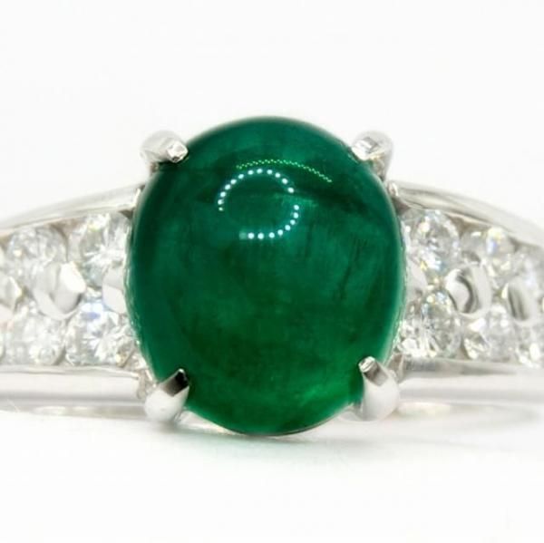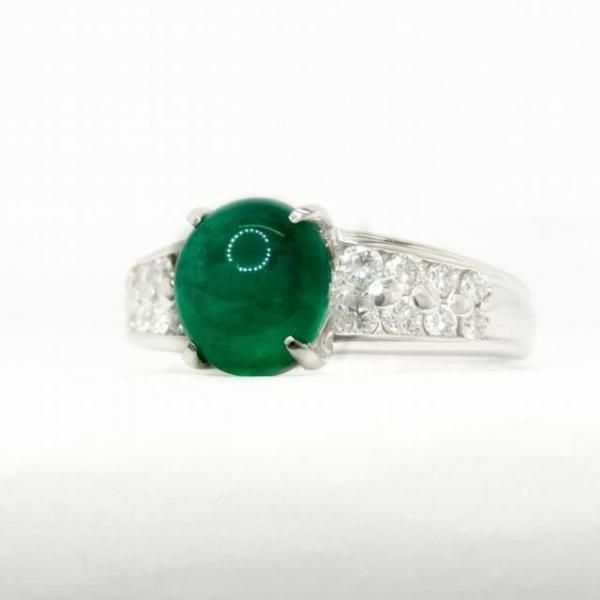 コロンビア産カボションエメラルド ダイヤモンドリング EM 1.76ct D 0.36ct Pt900 日独宝石研究所鑑別書付