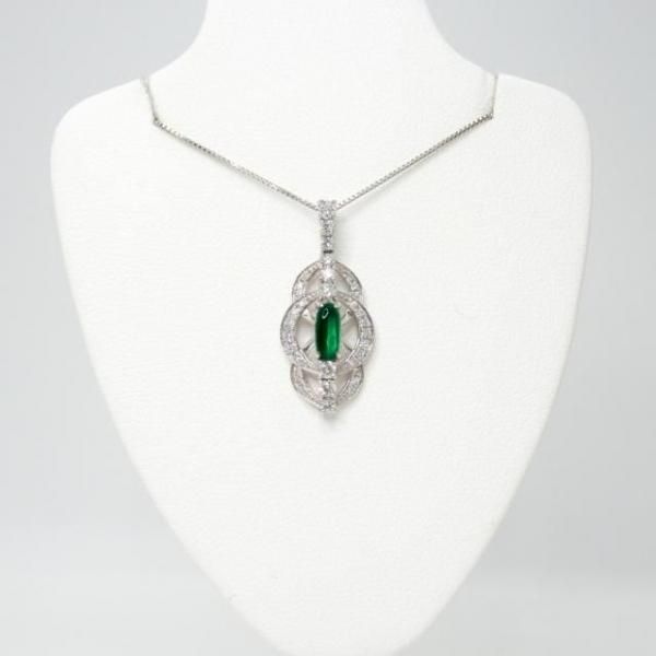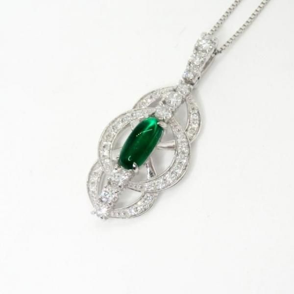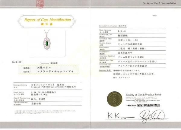 コロンビア産エメラルドキャッツアイ ダイヤモンドネックレス EM 0.36ct D 0.36ct 45cm Pt900 宝石貴金属協会鑑別書付 BOUTIQUE LINE