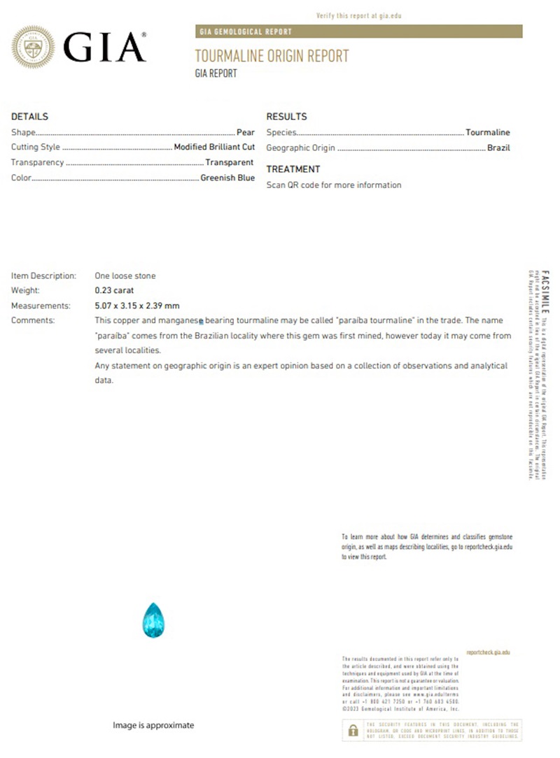 ブラジル産パライバトルマリン PA 0.23ct GIA鑑別書付